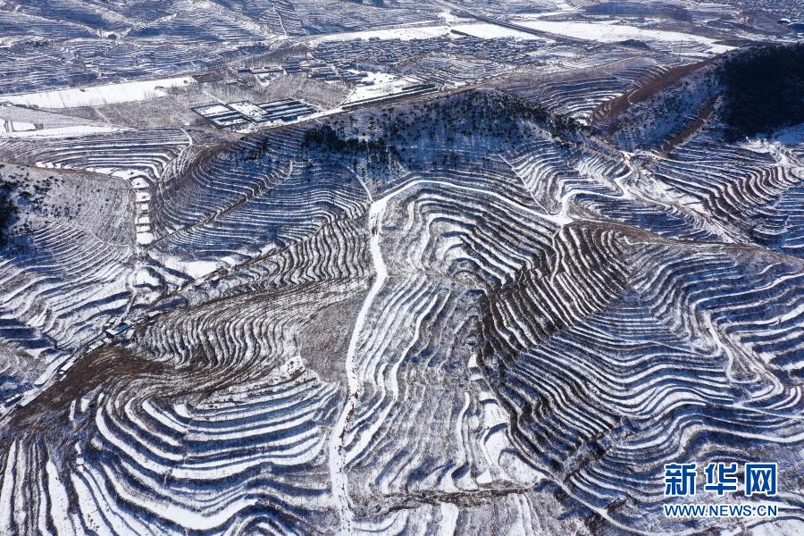 3月1日在河北省唐山市遷西縣新莊子鄉(xiāng)新莊子村拍攝的雪景(無人機照片) 。新華社發(fā)(王愛軍 攝)