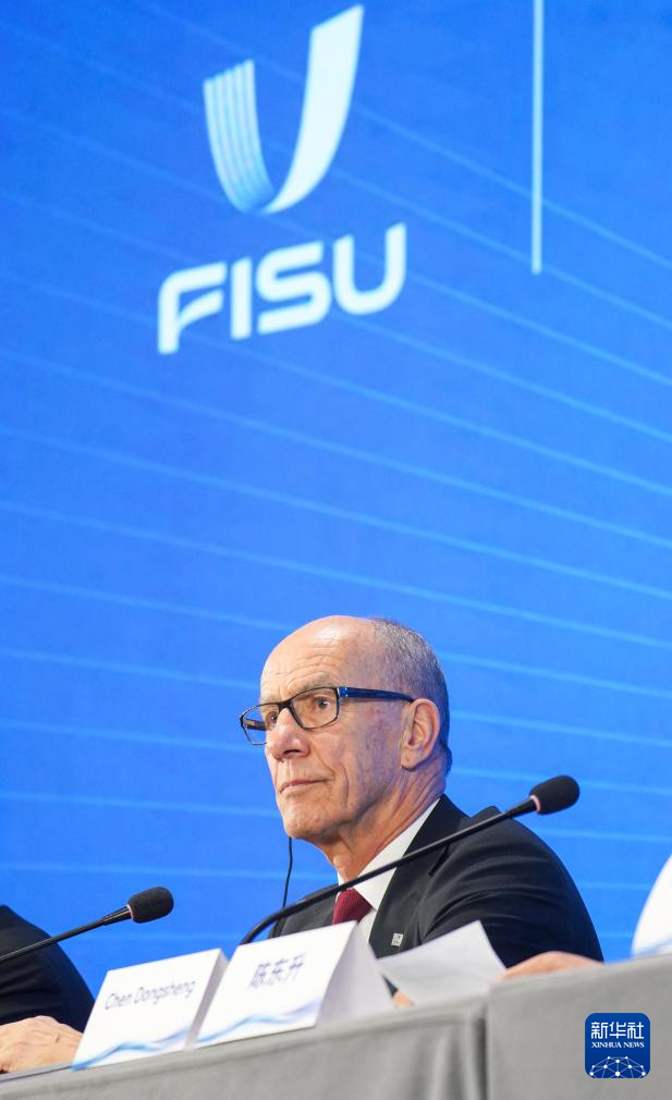 11月26日,国际大学生体育联合会主席雷诺·艾德在新闻发布会上。新华社记者 许畅 摄