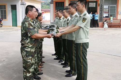 廣西崇左隘口邊防派出所為護村隊員配發執勤裝備