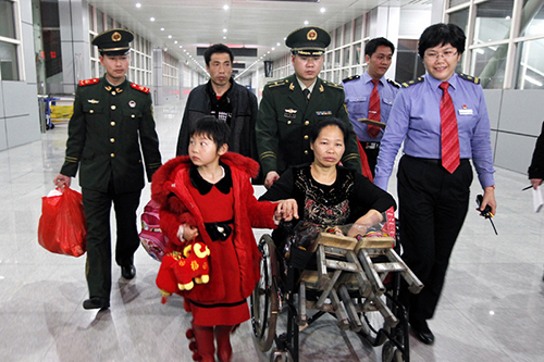 ????21日晚22時許,廣西南寧火車站迎來了3名特殊的乘客:無腿壯鄉女子李美文和其沒有雙手的丈夫劉海,還有他們6歲半的女兒……【詳細】