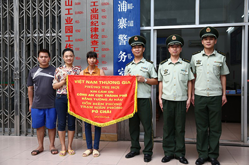越南客商向官兵贈送錦旗