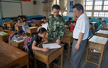 官兵輔導學生做功課?