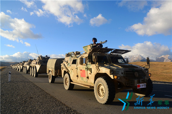 ????9月13日,我地面參演部隊采取摩托化機動方式,于9月12日從新疆阿圖什市出發,經吐爾尕特邊境口岸出境,行程共約510公里,于9月13日抵達演習地域。新華社記者王德思 攝