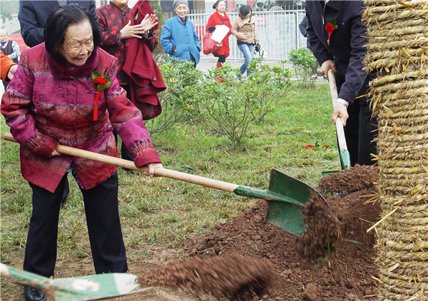 2010年,98歲的王定國在四川植樹。謝亞旭提供