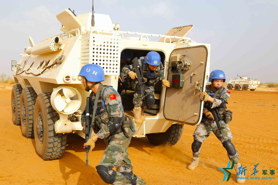 2014年10月20日,中國第二批赴馬里維和警衛分隊實施行進間處突演練——范存印攝