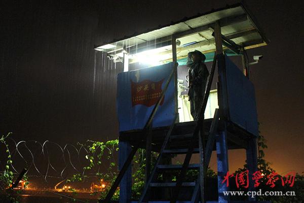 ????崗?fù)ど希瑹艄庀拢P直的身影密切注視著營區(qū)四周,曾經(jīng)有小偷趁雨夜藏匿海邊的雜草叢中,隊員及時發(fā)現(xiàn)并驅(qū)離,在雨夜里隊員們格外警惕,確保營區(qū)安全。(邵梁攝)
