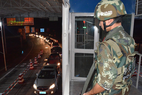 ????廣西楠木山邊境檢查站,每過(guò)一輛車,檢查員蔣煥彬都要使勁推動(dòng)重約100斤的防暴鐵馬,將檢查站的入口擋住,直到例行檢查未發(fā)現(xiàn)異常后,再將鐵馬拉開放行。這個(gè)動(dòng)作他在8小時(shí)執(zhí)勤時(shí)間內(nèi)基本上要重復(fù)幾百次。