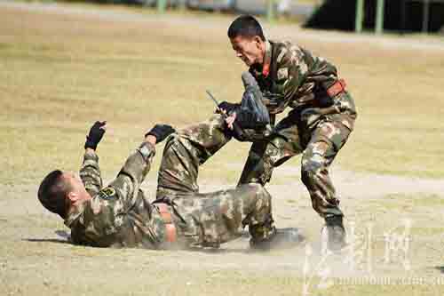 ????“進可一招殺敵,退可一招制服。”一等功臣、反恐尖兵、軍事教員、四級警士長李文介紹,此次展示的特種格斗控制術是該支隊在緝私、緝毒、反恐、維穩(wěn)等長期戰(zhàn)斗中形成和發(fā)展起來的一項格斗控制技能,綜合運用踢、摔、擒拿等技法,涵蓋重點部位打擊、徒手打擊、警械運用等要領,使官兵在訓練中體驗綜合格斗,在格斗中突破自我身體極限,達到強身健體、提高戰(zhàn)斗水平的目的。