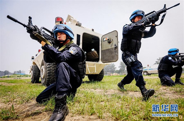 在考核現場,聯合國考官對隊員們在硝煙彌漫的實戰環境下所展現出的專業素養、精湛技能、靈活戰術、頑強作風給予了高度評價。從3月初開始,常備維和警隊第二期培訓班隊員按照更嚴標準,在中國維和警察培訓中心接受了為期4個月的強化集訓。期間,警隊立足“常備、應急、用之必勝”的職能定位,針對聯合國賦予的新增職能和任務區日趨嚴峻復雜的形勢,重點開展了對聯合國新政策的學習研究,加強了遭遇戰、運動戰、防御戰等戰術戰法實訓,在要人警衛、車輛查控、小組戰術、人群控制等傳統演練科目的基礎上,新增營區防御、特警、刑偵、社區警務等新內容,開展系統完整、獨具特色的實兵實裝模擬對抗演練,致力于樹立維和警察防暴隊甄選考核成績的新標準,打造中國常備維和警隊的亮點品牌。
