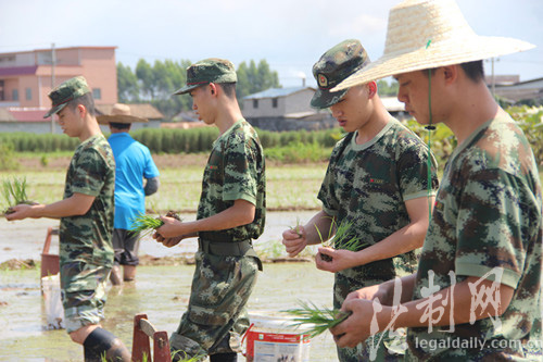 ????活動(dòng)過程中,這個(gè)站黨員官兵們了解到,貴港市八塘鎮(zhèn)吳大叔老伴腿腳不好使,女兒小菊行動(dòng)又不便,兒子還在上大學(xué),因無(wú)勞力,一家三畝多地的農(nóng)田仍閑著。為了防止錯(cuò)過種植晚稻最佳時(shí)節(jié),全體黨員官兵們卷起褲腿深入田間地頭,有的拔秧、有的運(yùn)秧、有的拋秧、有的栽插,雖然忙碌得汗流浹背,全身累得腰酸背痛,但官兵們依然熱情高漲,經(jīng)過官兵近4個(gè)多小時(shí)的辛勤勞動(dòng),終于把吳大叔家3畝左右的水田全部都插上了秧苗。