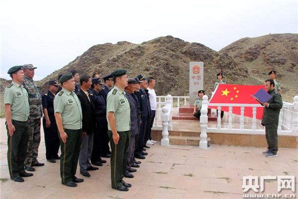 ????近日,烏拉斯臺邊檢站與口岸聯(lián)檢單位、“民族團結(jié)一家親”親戚代表、自治區(qū)駐疆內(nèi)口岸工作組在中蒙163界碑共同舉行“軍旗映國門忠誠鑄軍魂”發(fā)聲亮劍活動,全面貫徹落實新疆維護社會平穩(wěn)和長治久安總目標,打牢維護民族團結(jié)思想基礎,進一步增強廣大官兵的愛國主義情懷,展示執(zhí)勤官兵敢于發(fā)聲、勇于亮劍的堅定黨性及堅強擔當,表明堅決聽黨指揮、堅決維護社會大局安定的理想信念。官兵們一致表示,將始終以更加飽滿的工作熱情投入到邊檢查緝工作中,認真履職,敢于擔當,筑牢邊境防控的銅墻鐵壁。
