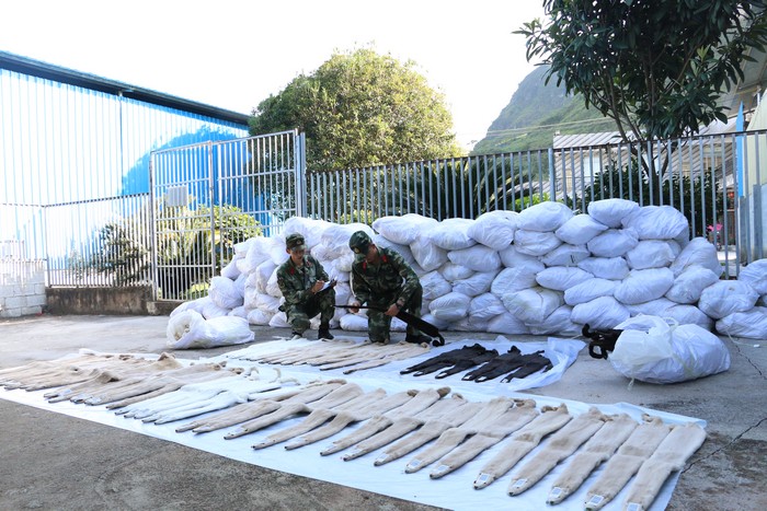 ????該支隊獲得情報后成立專案組,在轄區(qū)展開排查。其間,發(fā)現(xiàn)龍邦鎮(zhèn)一車輛裝載可疑涉私貨物,待其裝載完畢后,隨即追蹤該車。行駛中,該車從小路繞過邊防執(zhí)勤點和檢查站。歷經(jīng)兩個多小時追蹤后,專案組截停該車,當場查獲無合法手續(xù)貂皮80多件5200多張。