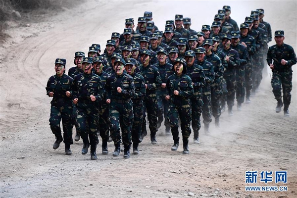 第75集團軍某特戰旅指揮通信連進行越野訓練(2月1日攝)。新華社記者 張永進 攝