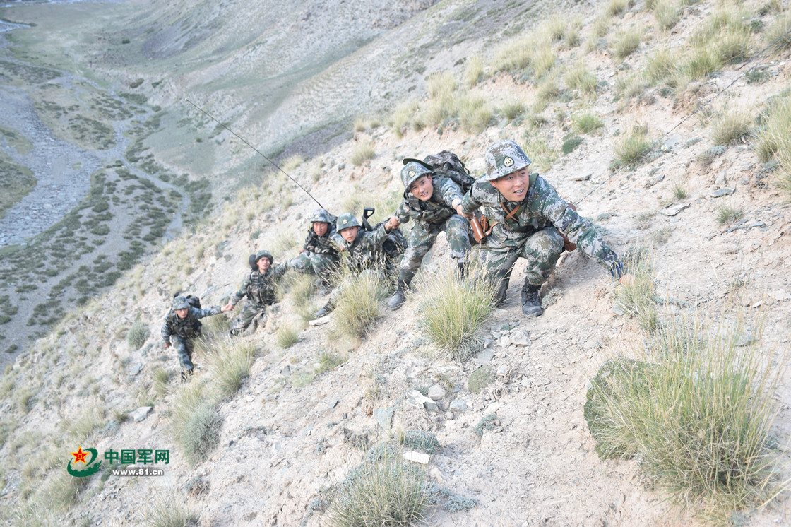 在高達60多度的陡坡上,新戰士手拉手,分批次翻越窮鐵列克達坂。嚴曉春攝