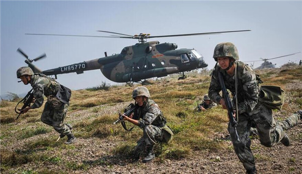 ????資料照片:演習中,“硬骨頭六連”官兵向“敵”實施機降突擊(2011年10月9日攝)