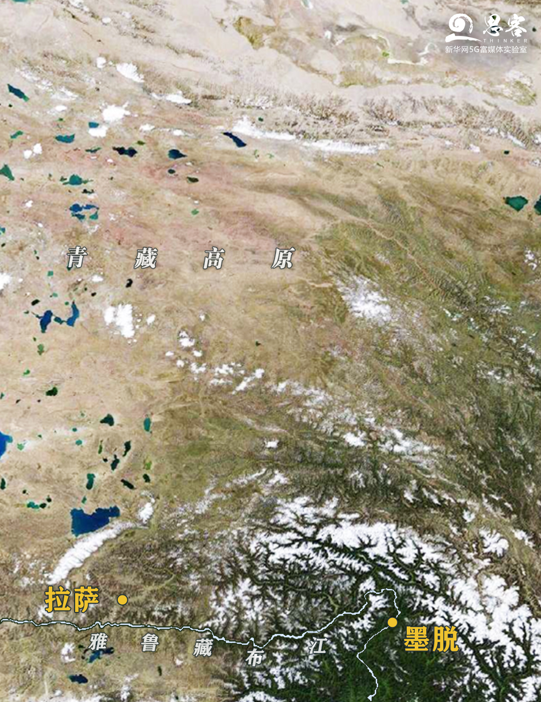 ▲鑲嵌在雅魯藏布江峽谷深處的“秘境”墨脫。衛星數據來源:SENTINEL-2