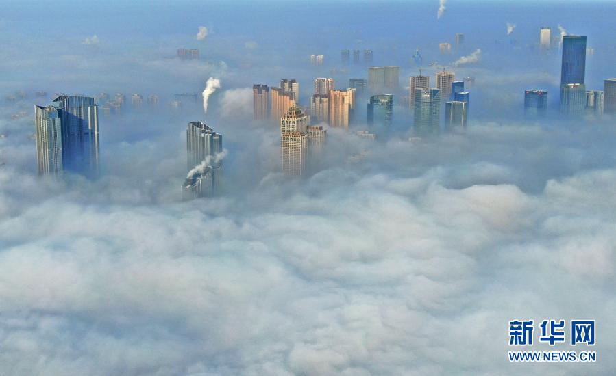 這是1月26日在沈陽市渾南區拍攝的市內霧景(無人機照片)。新華社記者 楊青 攝