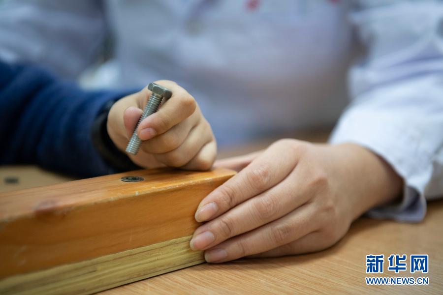 在哈爾濱博能中醫(yī)門診部,劉雨晴為腦癱兒童進行康復訓練(2月2日攝)。