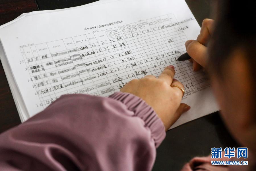 2月13日,吳窮在坪子社區綜合服務中心內登記返鄉人員信息。新華社記者 歐東衢攝