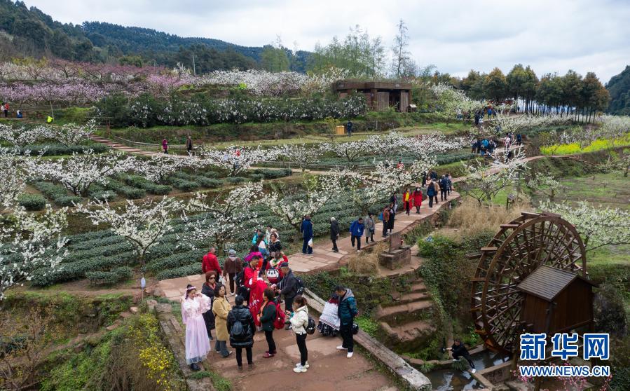 3月1日,游客在幸福古村里游玩(無人機照片)。新華社記者 江宏景 攝