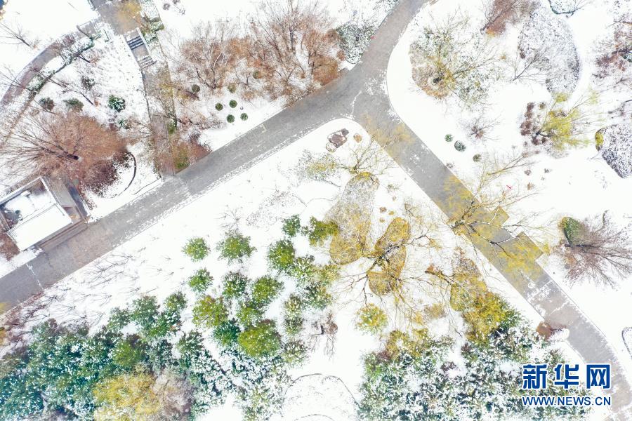這是3月1日拍攝的山西平遙古城南門外迎薰公園一角(無人機照片)。新華社發(梁生仁 攝)