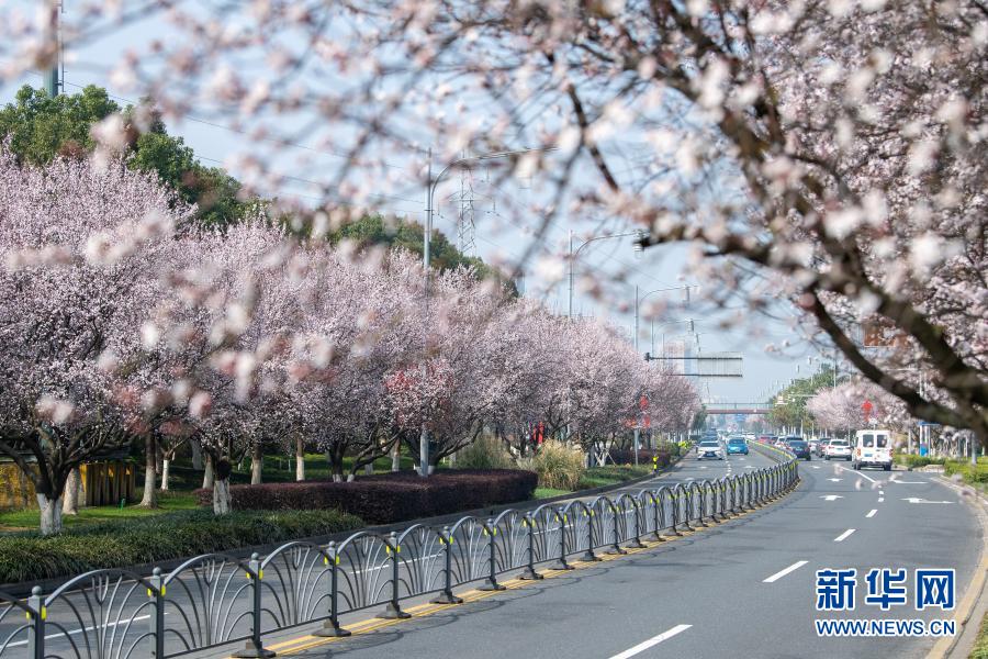 江蘇省昆山市馬鞍山路兩旁鮮花盛開(3月2日攝)。新華社發(王須中 攝)