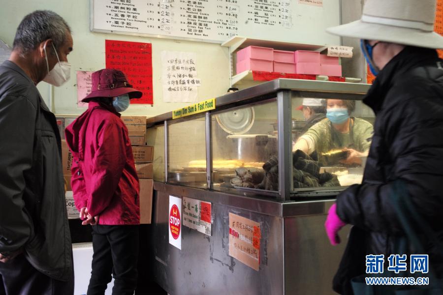 3月3日,人們在美國加利福尼亞州舊金山唐人街一家餐館內(nèi)購買餐食。新華社記者 吳曉凌 攝