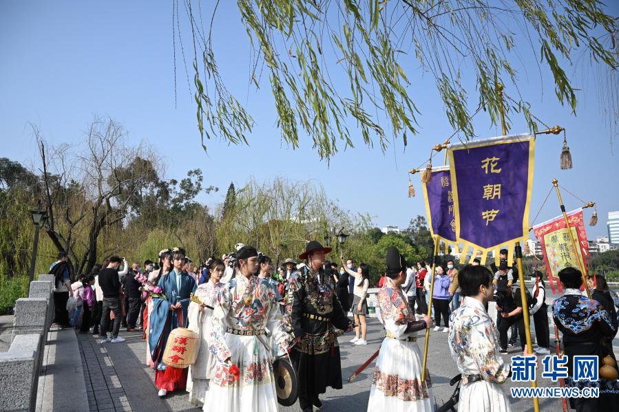 3月13日至14日,第二屆福州西湖花朝節系列活動在福州西湖公園舉行,流觴詩會、漢服雅集、百花祭典、簪花游園等10場活動再現花朝節傳統民俗文化之美。