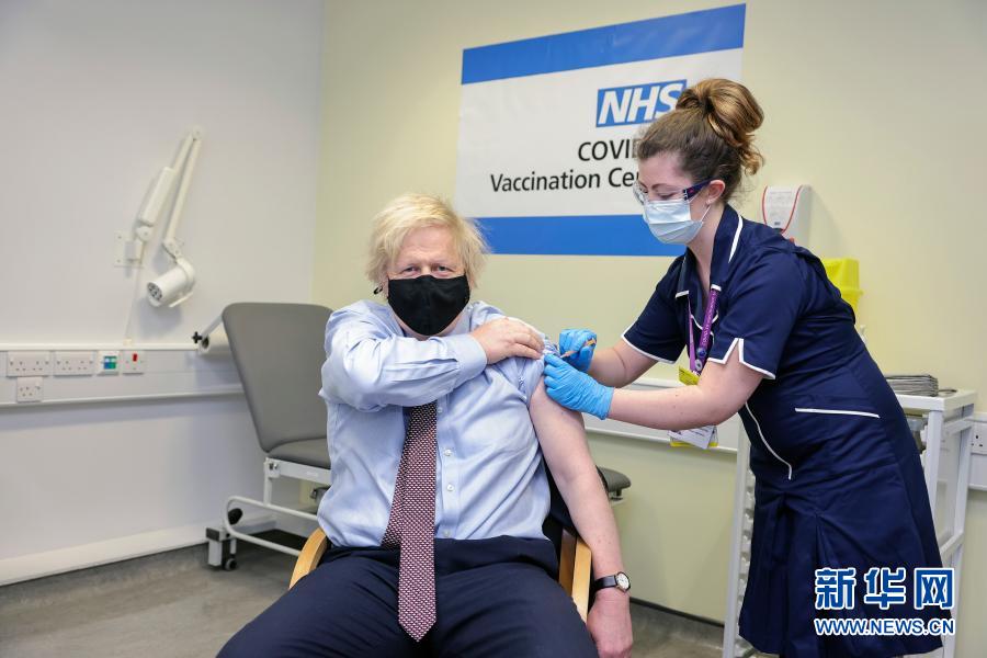 3月19日,英國首相約翰遜(左)在倫敦一所醫院接種新冠疫苗。新華社發(英國首相府供圖)