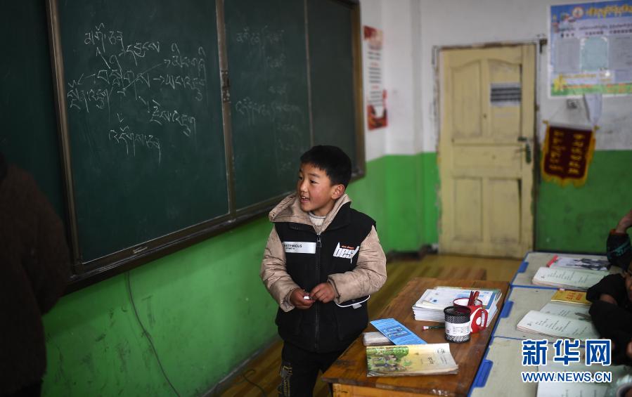 3月16日,索加鄉寄宿小學學生尕瑪桑丁在藏語文課上。新華社記者 張宏祥 攝