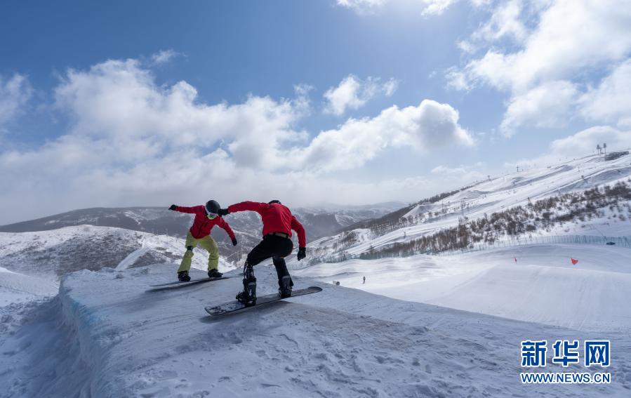3月20日,冬殘奧會國家集訓(xùn)隊單板滑雪運動員劉伊揚(左)和武中偉在冬殘奧會訓(xùn)練基地訓(xùn)練。新華社記者 才揚 攝