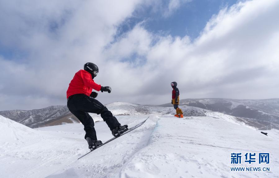 3月20日,冬殘奧會國家集訓隊單板滑雪運動員巖溫的(左)在冬殘奧會訓練基地訓練。新華社記者 才揚 攝