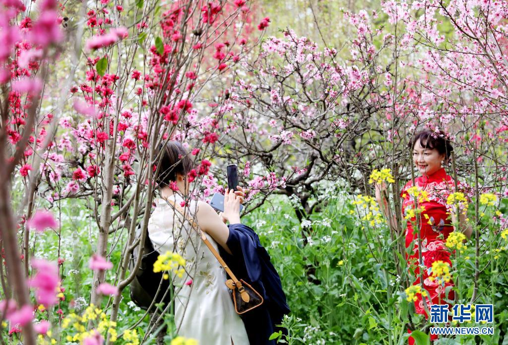 3月26日,“春暖浦東 十里桃花”2021上海桃花節(jié)開幕儀式在浦東南匯惠南鎮(zhèn)桃花村舉行,身著旗袍的游客在桃花叢中拍照。