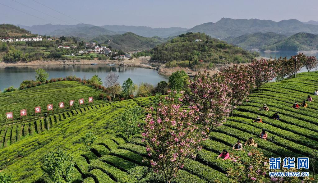 秦巴山區的陜西省安康市漢濱區流水鎮,一面依山三面環水。山水之間,鄉村農家,與滿目青山中的茶園果園相映成趣,構成一幅清新悠然的田園畫卷。湖邊沿岸點綴的多處名勝古跡,更為小鎮增添了文化韻味。