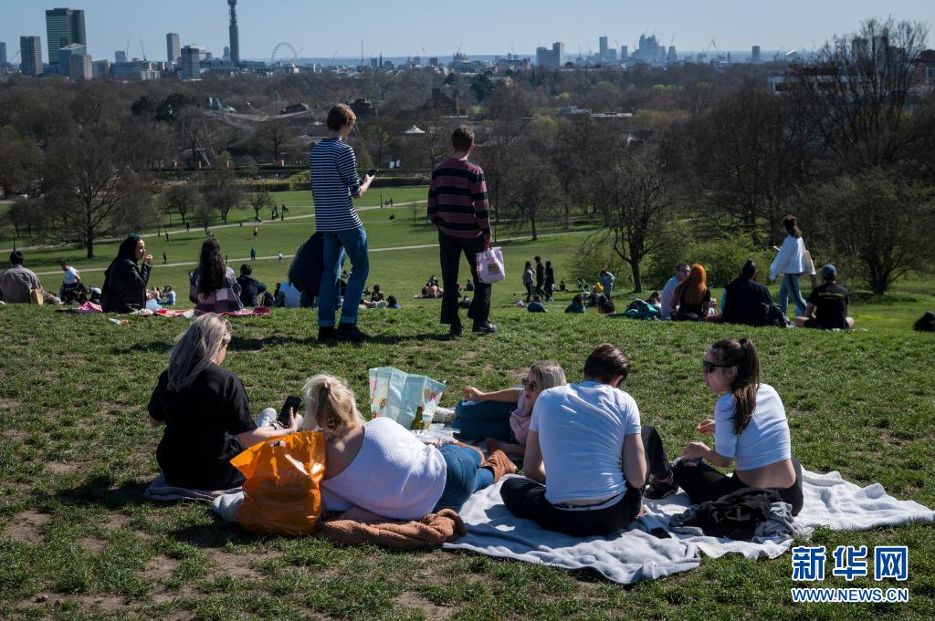 3月29日,人們?cè)谟?guó)倫敦的報(bào)春花山享受陽(yáng)光。