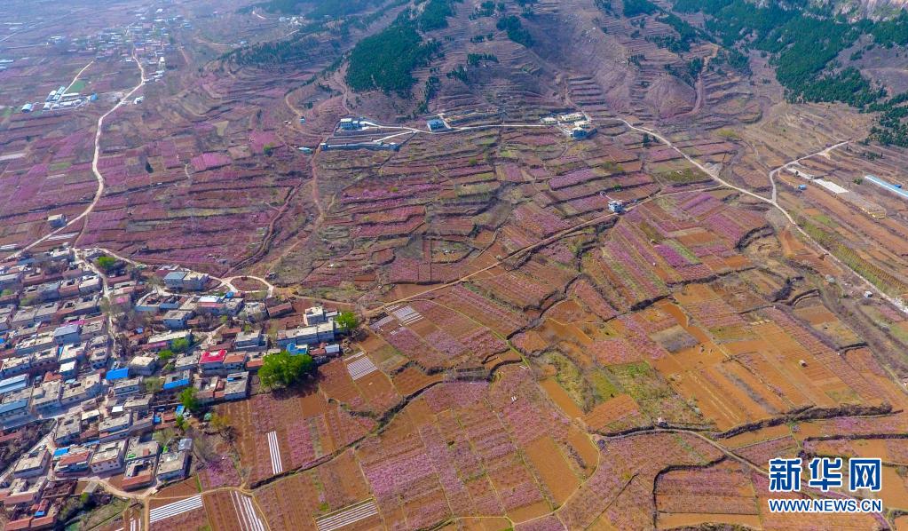 這是3月30日拍攝的濟南市仲宮街道的桃園風光(無人機照片)。