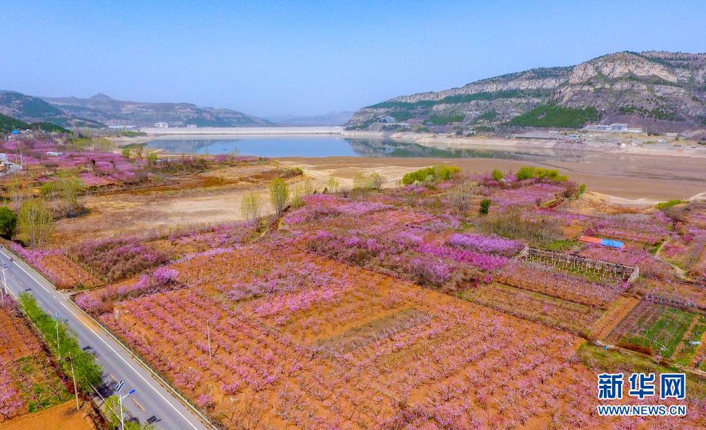 這是3月30日拍攝的濟南市仲宮街道的桃園風光(無人機照片)。
