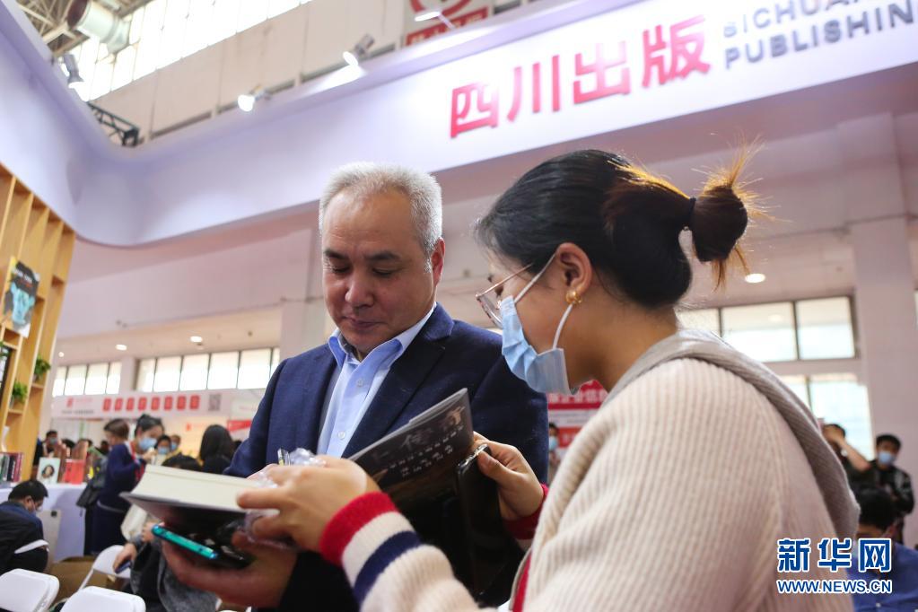 3月31日,在四川出版展區,新書《海上傳奇》作者馬駿杰為讀者簽名。