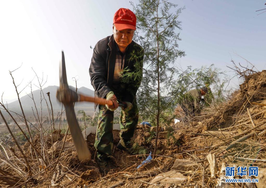 仲春時節,河北省遵化市提前開始今年的荒山造林,造林隊員們忙著運送樹苗、栽樹、澆水。遵化市今年計劃完成荒山造林5萬多畝。
