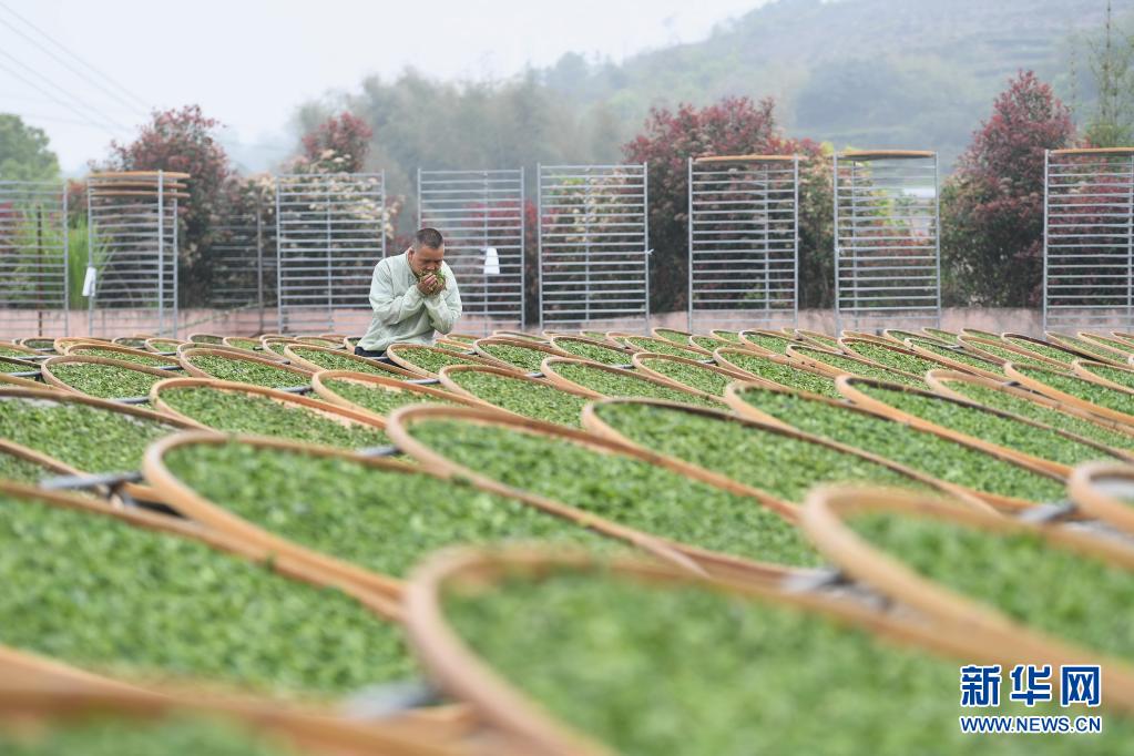 4月2日,制茶師傅在福鼎佳陽畬族鄉一茶廠識別日曬茶葉的香氣。新華社記者 林善傳 攝
