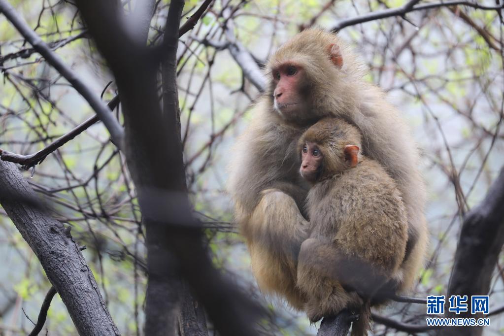 4月3日,在神農(nóng)山風(fēng)景區(qū),兩只太行獼猴偎依著。隨著氣溫回暖,河南省沁陽(yáng)市神農(nóng)山風(fēng)景區(qū)野生太行獼猴活躍起來(lái),在山林間嬉戲玩鬧,為景區(qū)增添生機(jī)和靈氣。新華社發(fā)(徐宏星 攝)