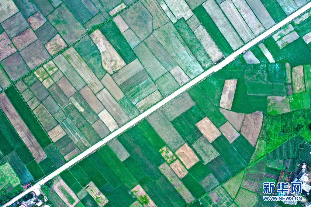 這是廣西欽州市欽南區康熙嶺鎮的田園風光(4月5日攝,無人機照片)。