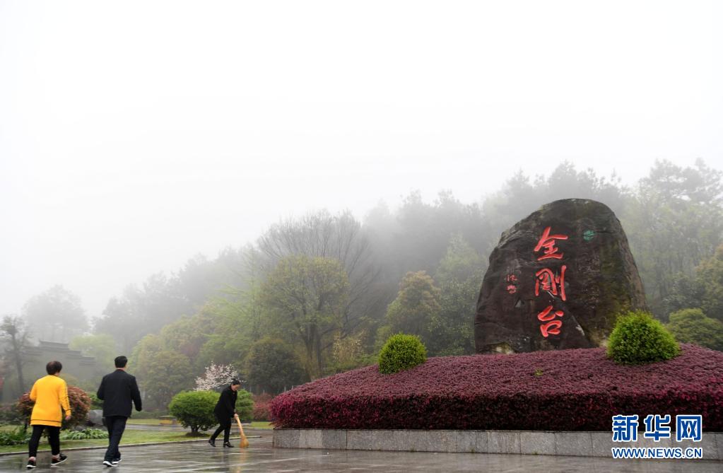 4月2日,曾祥有(左二)與妻子一起登上金剛臺,準備去紅軍洞祭奠。