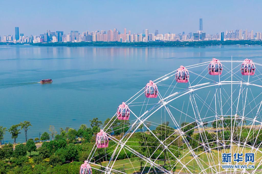 2020年8月17日拍攝的武漢“東湖之眼”摩天輪(無人機(jī)照片)。新華社記者 熊琦 攝