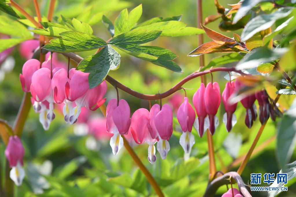 在河北省邯鄲市廣平縣鵝城牡丹園,荷包牡丹迎來盛花期(4月8日攝)。