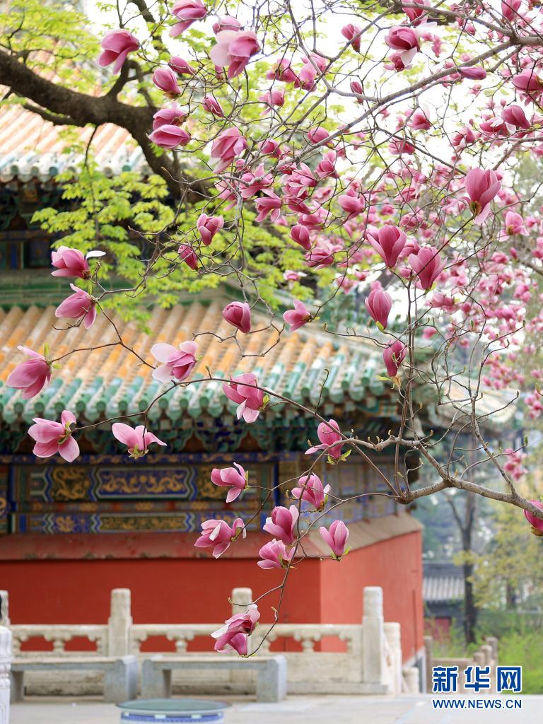 4月10日在北京潭柘寺拍攝的盛開的玉蘭花。新華社發(李學忠 攝)