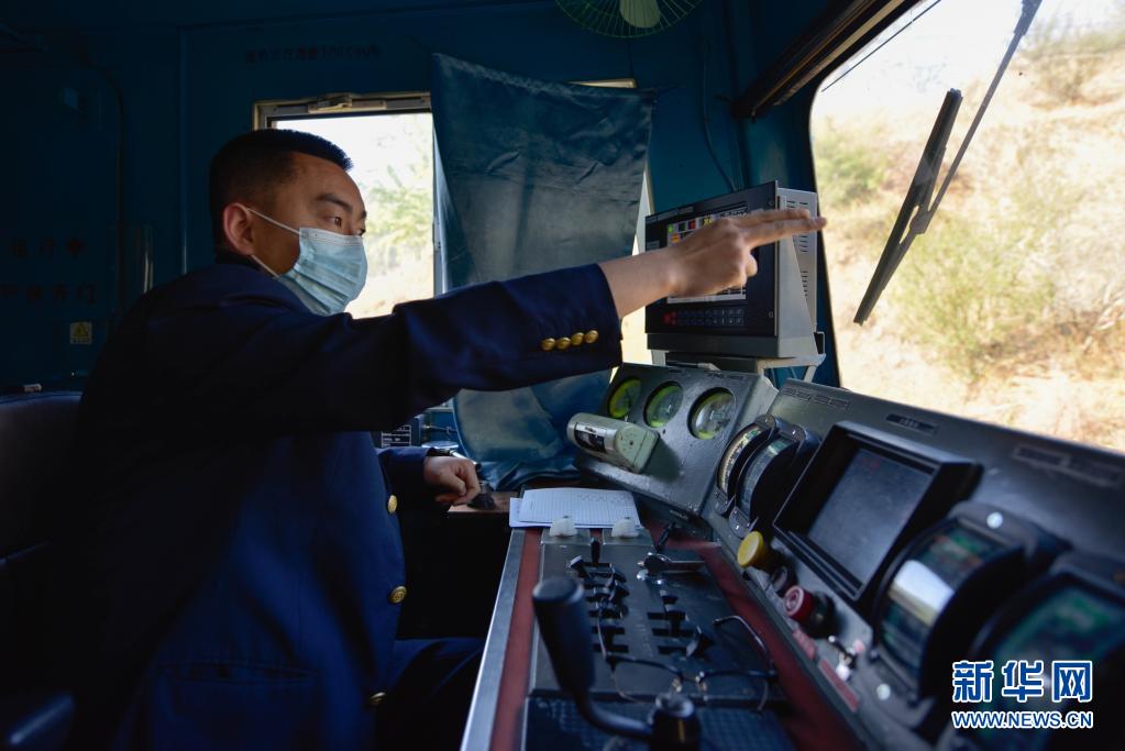 中國鐵路成都局集團(tuán)公司成都客運(yùn)段5633/5634次列車駕駛員趙瑋在發(fā)車前確認(rèn)信號(4月11日攝)。新華社記者 胥冰潔 攝