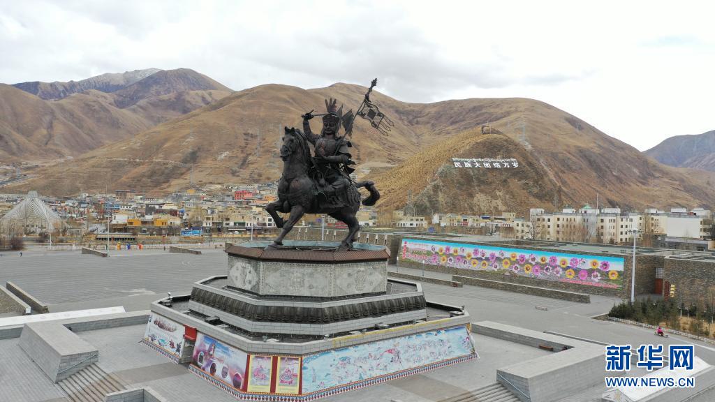 這是青海省玉樹(shù)藏族自治州玉樹(shù)市格薩爾王廣場(chǎng)(3月10日攝,無(wú)人機(jī)照片)。
