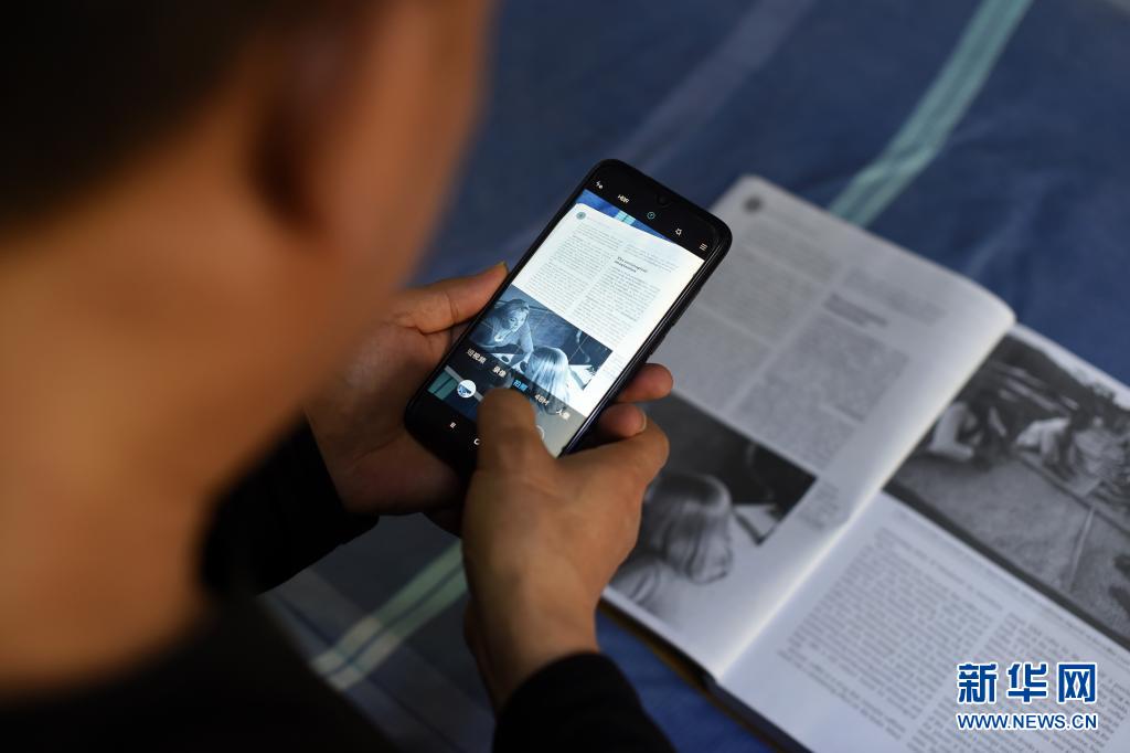 包珍妮無(wú)法正常閱讀紙質(zhì)書籍,父親包宗鋒將書的內(nèi)容分頁(yè)拍照供她在電腦上學(xué)習(xí)(4月14日攝)。