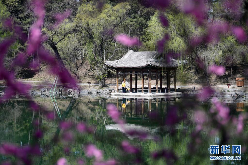 近期,河北承德避暑山莊景區內花紅柳綠,春光旖旎,盛開的春花與古典建筑相映成趣,吸引游客前來踏青游玩。